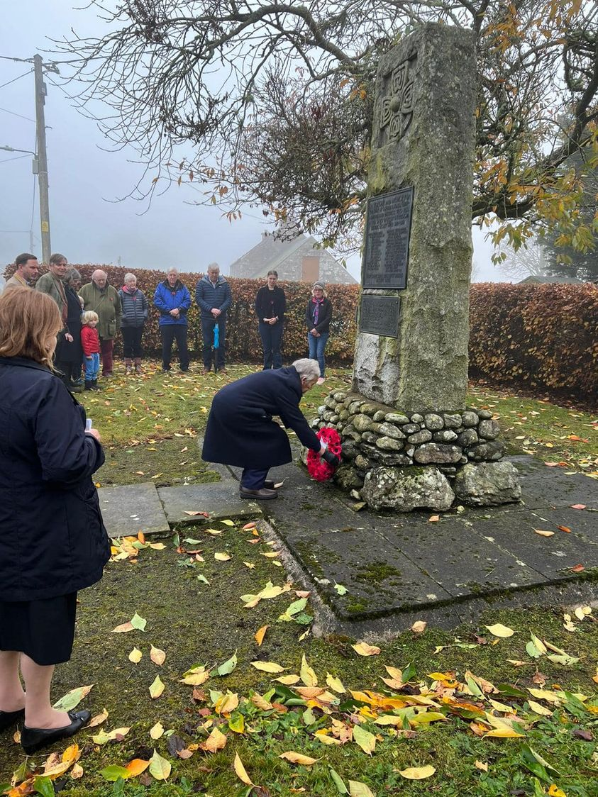 Kate Leathley, a community leader, laying the poppy wreath at the War Memorial in Harrietfield, Logiealmond. Lady Georgina Bullough DL attended on behalf of the Lieutenancy.