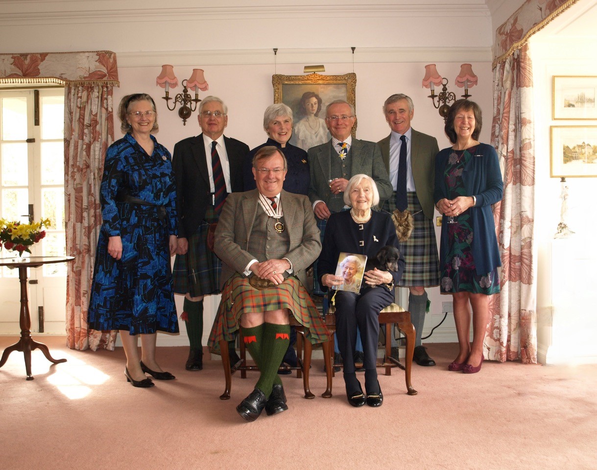 Today is a special day celebrating with her own surviving children, James, Ian and Fiona, Caroline, the eldest, having sadly died at the age of 52). She is shown here being presented with a Birthday card from Her Majesty the Queen by the Vice Lord-Lieutenant, Major David Noble.